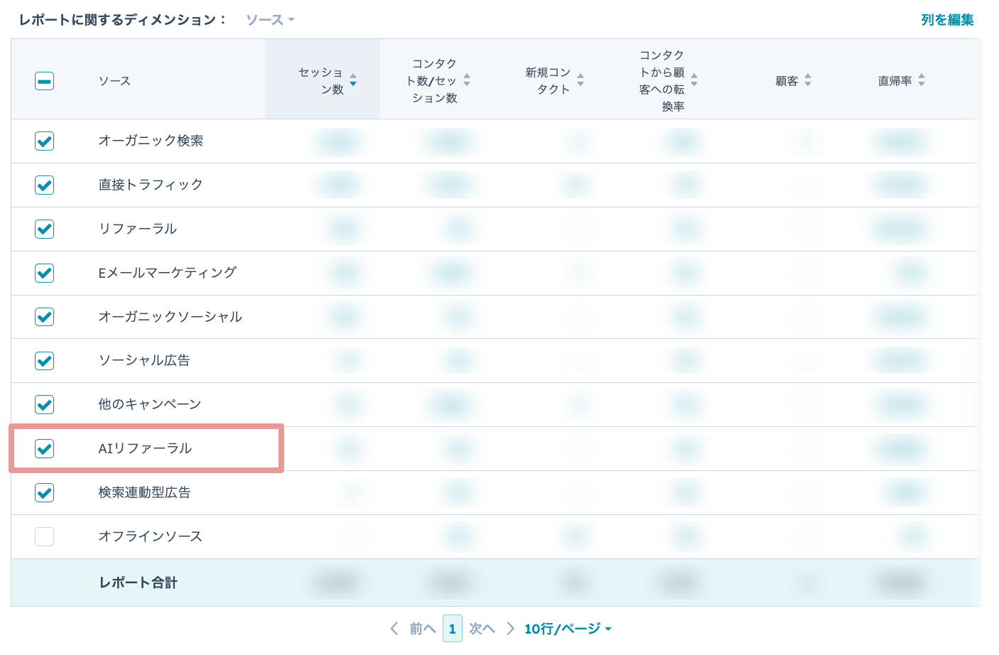 訪問者がAIプラットフォーム(例:ChatGPT)の応答内で引用されたリンクをクリックしてウェブサイトに訪れると、HubSpotはリファーラルデータ内のAIプラットフォームのドメインを自動で検出します。