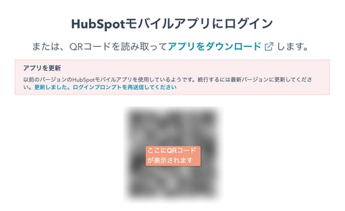・HubSpotモバイルアプリを選択すると、HubSpotアプリをダウンロードするためのQRコードが表示されます。お手持ちのスマートフォンからQRコードを読み取ってください。