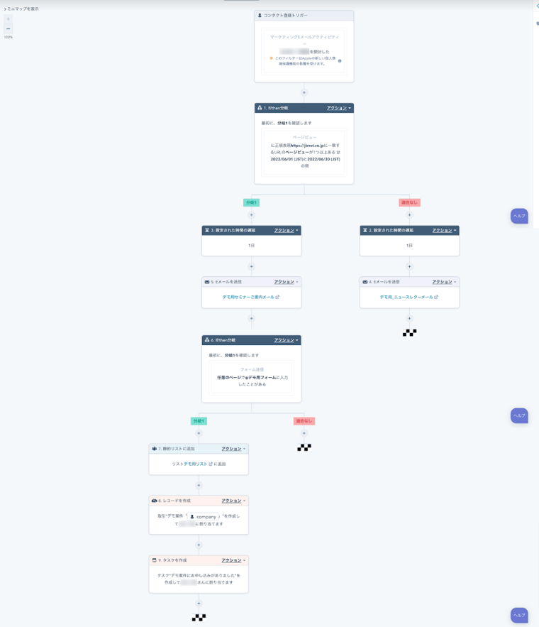 ※マーケティング施策を自動で行うためのワークフロー作成画面