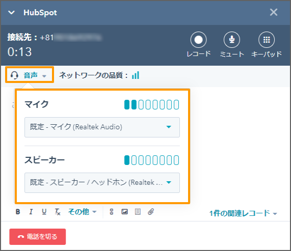 HubSpotのコンタクト・会社・取引・チケットのレコード画面では「コール」機能が使用できます。コール機能を使用できるブラウザは以下の通りです。