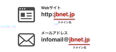 たとえばWebサイトのURLが「https://www.jbnet.jp」であればドメイン名は「jbnet.jp」になります。