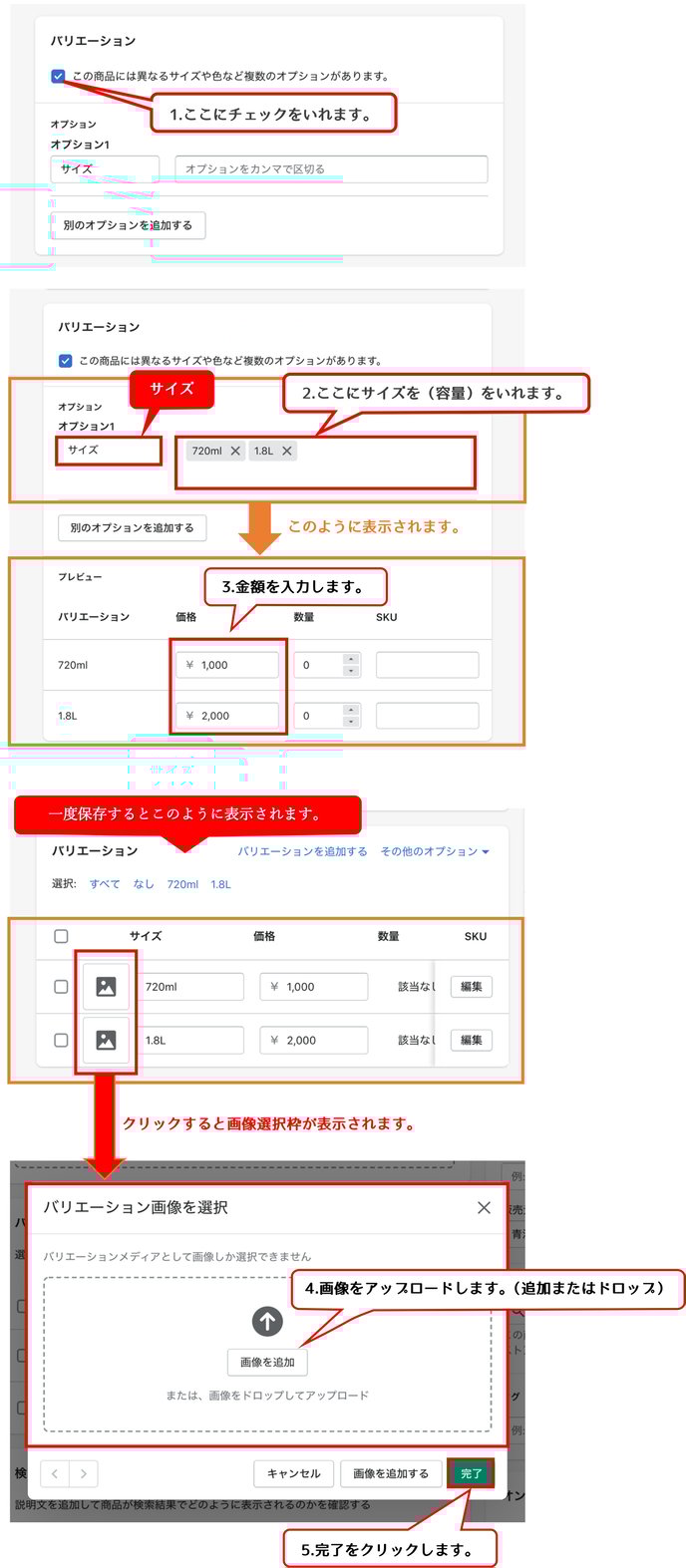 Shopifyのバリエーション編集