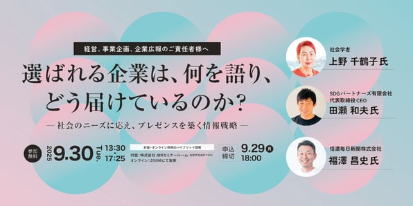 株式会社JBNは、2025年9月30日(火)に「選ばれる企業は、何を語り、どう届けているのか? ― 社会のニーズに応え、プレゼンスを築く情報戦略 ―」というセミナーを開催しました。 登壇者には ・社会…